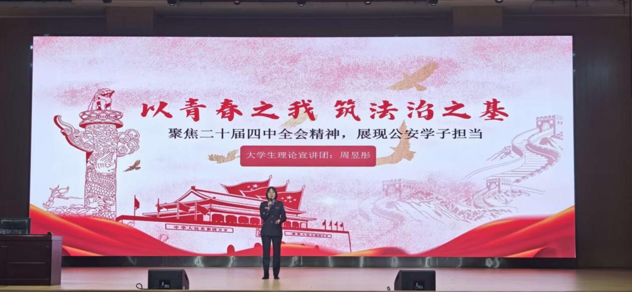 在全国上下深入学习贯彻党的二十届四中全会精神之际,云南警官学院于近日举办第十九期“名师讲坛”,马克思主义学院院长陈明珍教授与四位大学生理论宣讲团成员联袂登台,以鲜活语言、青春视角解读党的二十届四中全会精神,让理论宣讲既有思想深度又具青春活力,为现场预备警官们带来一场浸润心灵的思想盛宴。