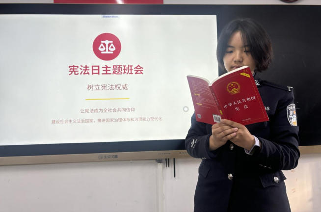 12月4日清晨,法学专业大队的学生们集体诵读宪法条款。朗朗书声,让宪法文字从纸面跃入心间。随后的主题班会上,“宪法和未来工作有什么关系?”成为热议话题,抽象的宪法原则与具体的职业使命紧密相连。