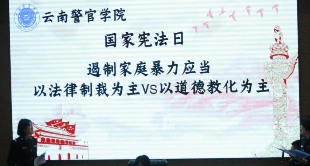 “我宣誓:忠于中华人民共和国宪法,维护宪法权威,履行法定职责……”铿锵有力的誓言,在多个会场同时响起。第12个“国家宪法日”暨全国“宪法宣传周”到来之际,云南警官学院围绕“学习宣传贯彻习近平法治思想,推动宪法深入人心”活动主题,开展了一系列形式新颖、内容深刻的宣传活动,让宪法精神在警营深深扎根。