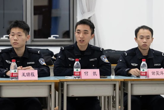 同校的何凯同学接过话题,他结合自己在湖南警院“青年马克思主义者培养工程”培训班的学习经历,分享了自己的感悟:“在‘青马班’,我们不仅学理论,更注重思考如何将习近平法治思想融入未来的从警实践。这让我深刻体会到,法治信仰与青年使命是紧密相连的。”